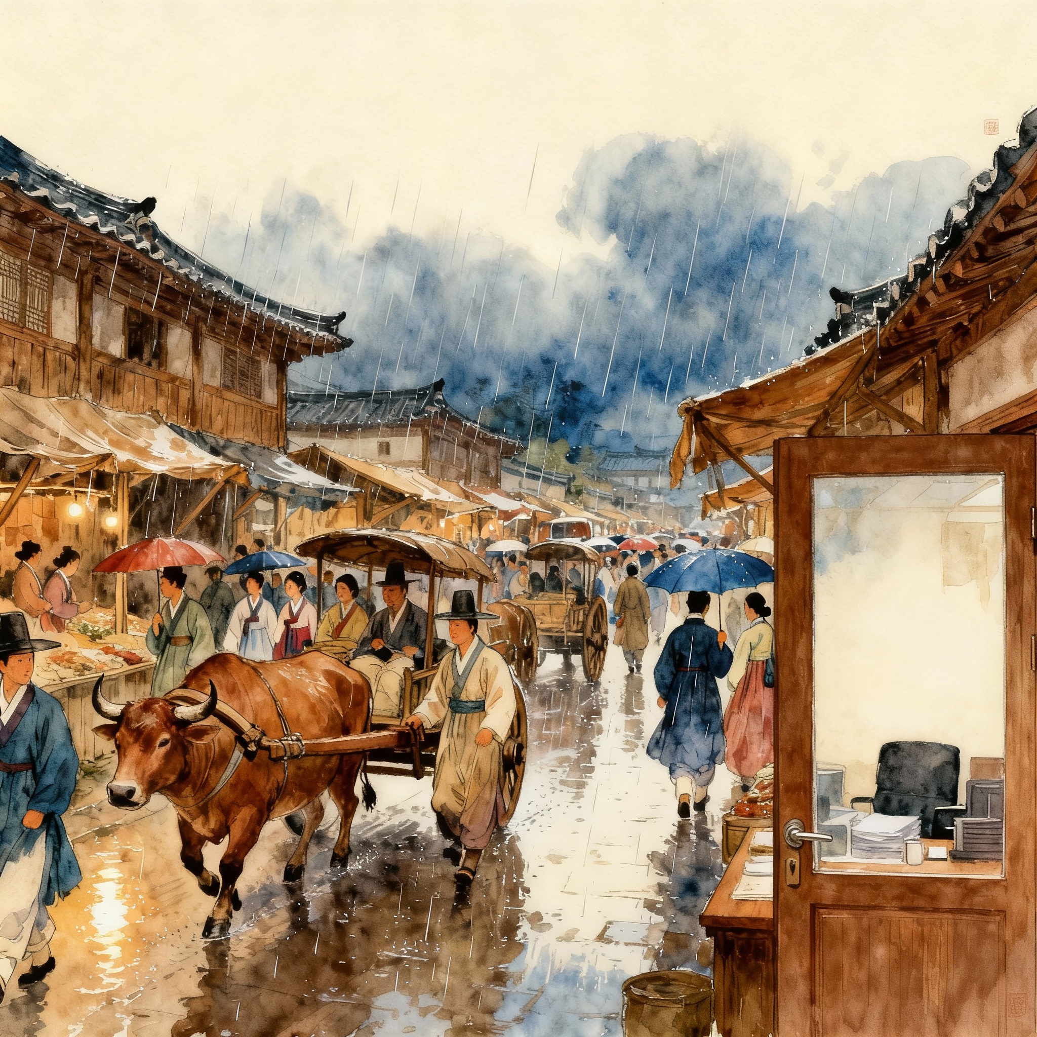‘가는 날이 장날이다’는 어떤 일을 하러 간 바로 그날에 예상치 못한 변수가 터져 계획이 어그러지는 상황을 가리킨다. 예전에는 장이 서는 날이면 길이 막히고 물가가 들썩이며 사람이 몰려 평소와 다른 흐름이 생겼다. 평상시에는 거뜬히 처리했을 일도 장날에는 줄을 서고, 절차가 늘어나고, 준비가 덜 된 채로 급히 움직이다 보니 작은 실수도 커지기 쉽다. 그래서 이 말에는 일의 흐름과 타이밍이 어긋나 생기는 허탈함, 그리고 그 속에서 대비의 필요성을 환기하는 뉘앙스가 담겨 있다.